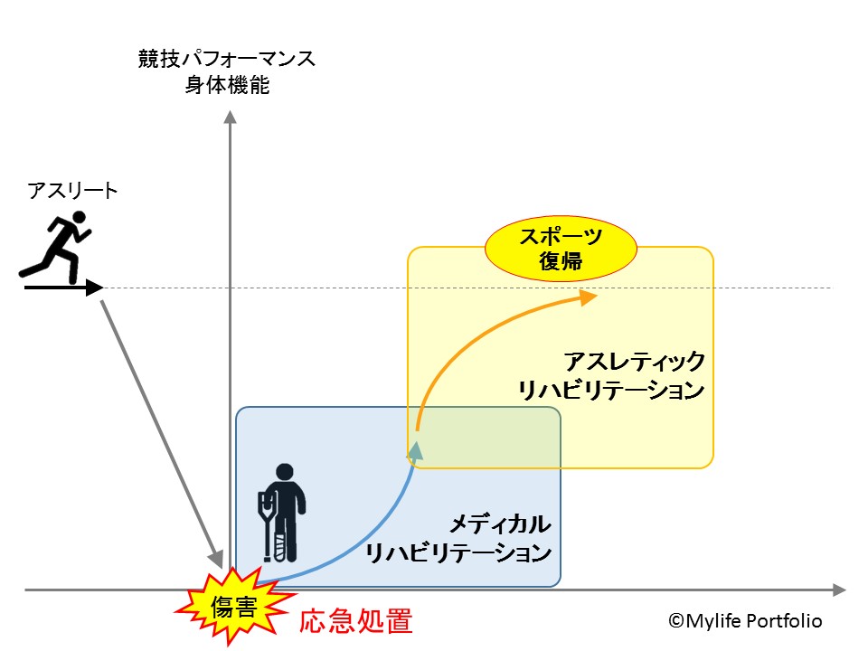 社会復帰までのリハビリテーションをmedical rehabilitation としこれに対比する意味で競技者のスポーツ復帰のためのリハビリテーションをathletic rehabilitation と呼んでいる.