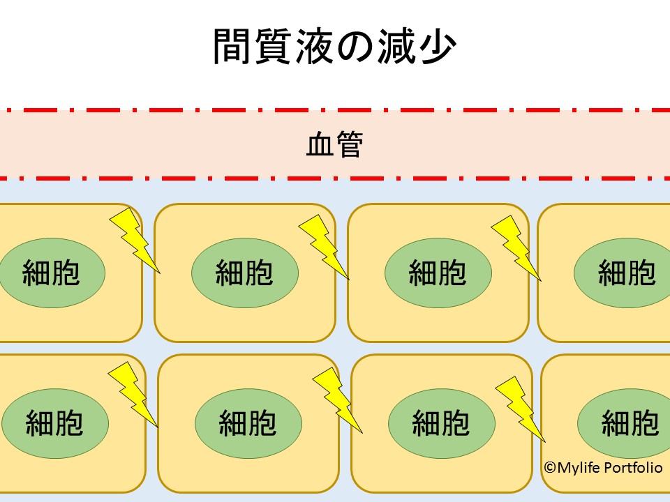間質液の減少が続けば組織間のスペースは狭まっていくため、細胞に機械的な刺激が加わります。
