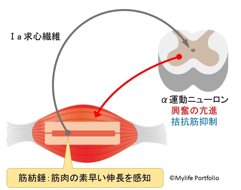この仮説は筋疲労により、「脊髄と筋の間の神経反射回路における興奮性増進と抑制性低下」が生じてしまう事が原因であると考えられている。