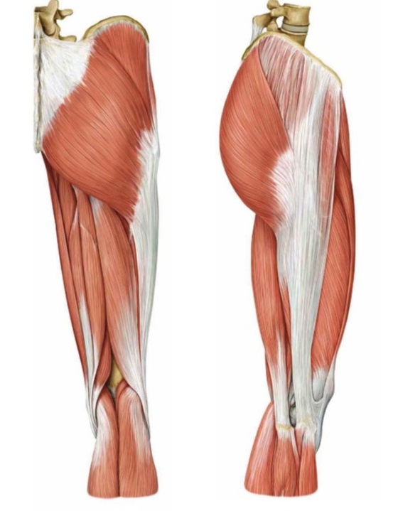 股関節の伸展に関わるメインの筋肉はお尻の大殿筋やハムストリングスです。