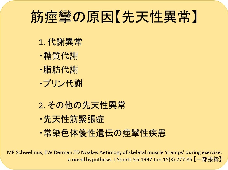 Giuriato G, Pedrinolla A, Schena F, Venturelli M. Muscle cramps:a comparison of the two-leading hypothesis. J Electromyogr Kinesiol. 2018;41:89–95.(論文要約)