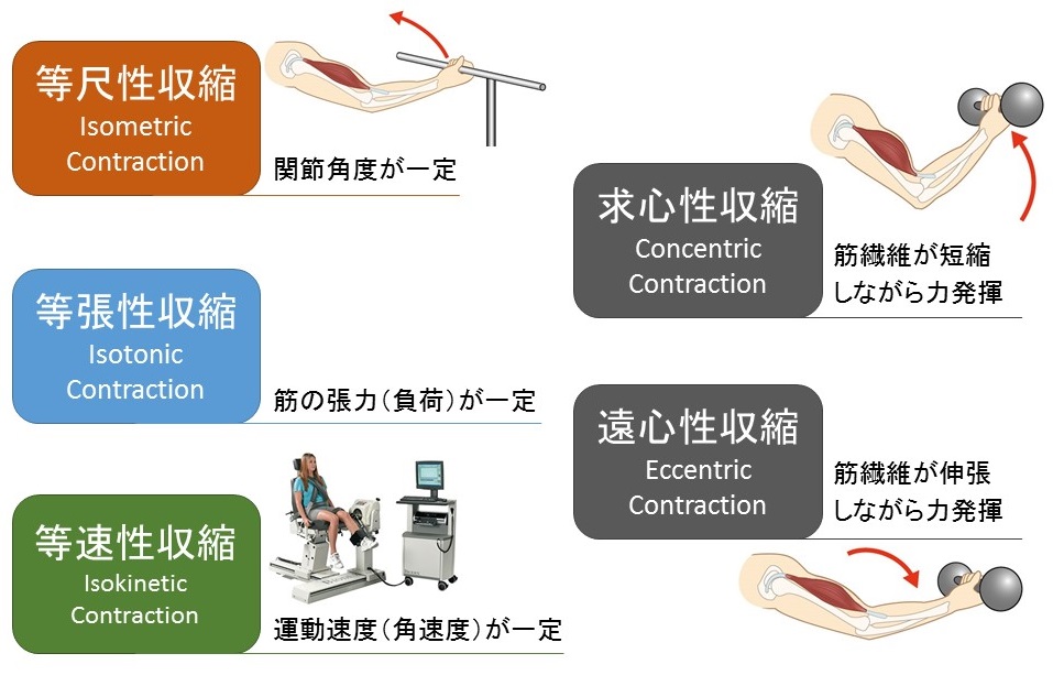 筋繊維が収縮し関節の運動を生じる際、大きく3つのタイプの収縮様式があります。